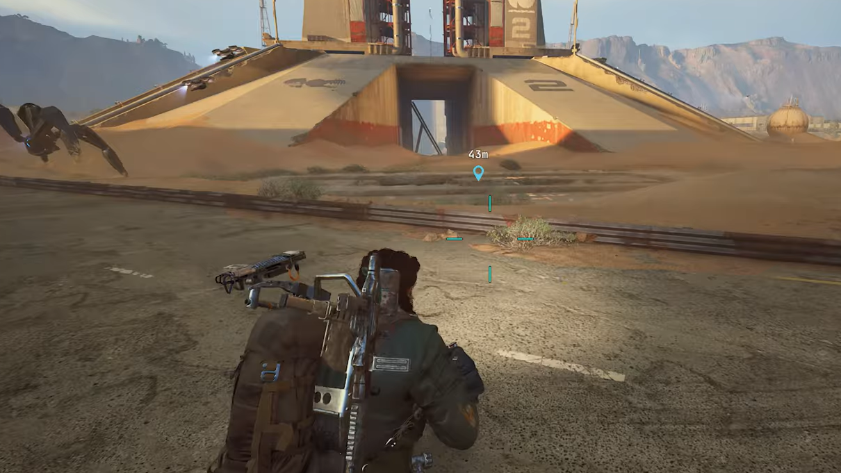 Step 1: Exit the Departure Building, staying near its southeastern side. Between the Departure Building and the Launch Towers, there is a large break in the concrete floor that leads straight down into the tunnels. This opening is on the southeast of Departure and southwest of the Launch Towers.