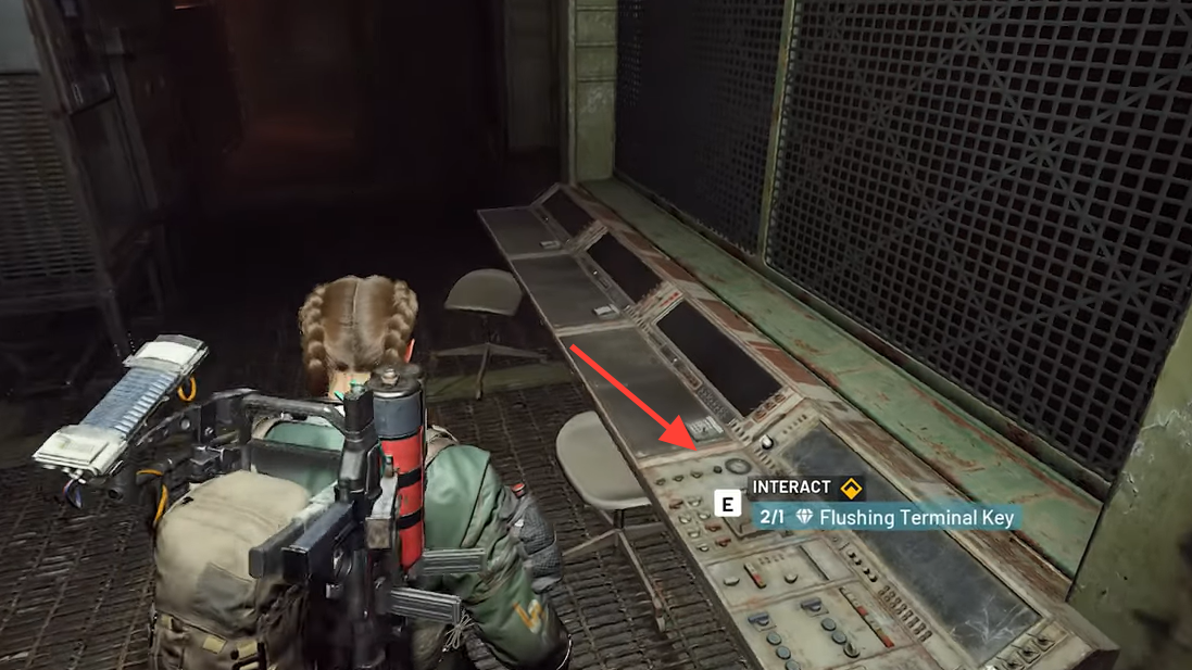 The quest description mentions “any Flushing Terminal,” and consoles of this type appear in multiple control rooms along the tunnel walkway, so you are not locked to a single specific room as long as the console matches the Flushing Terminal type.