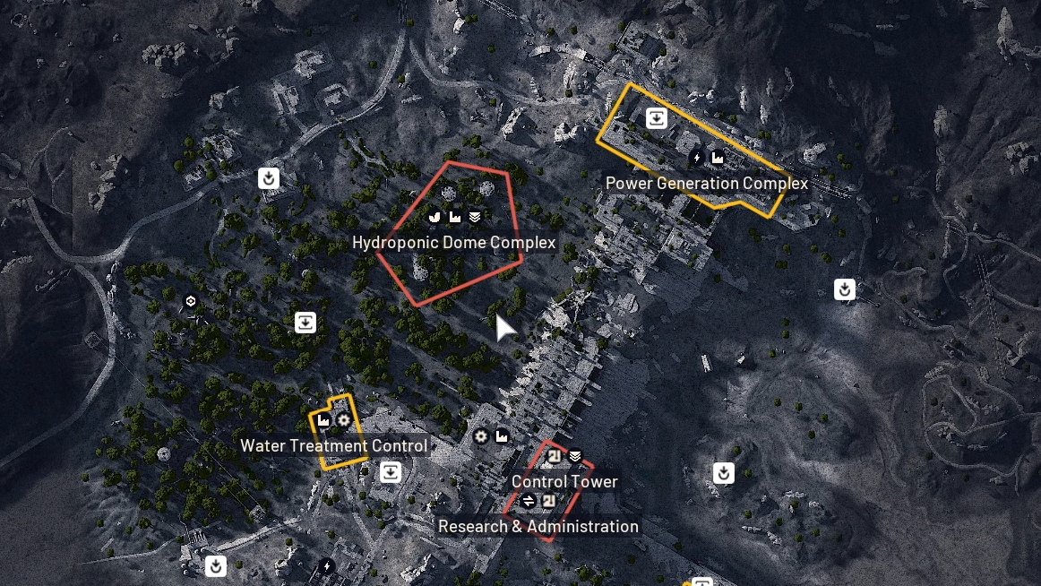 - Descend a level in Power Generation Complex and clear tech rooms first: breachable metal containers, server cabinets, desks, and shelves.