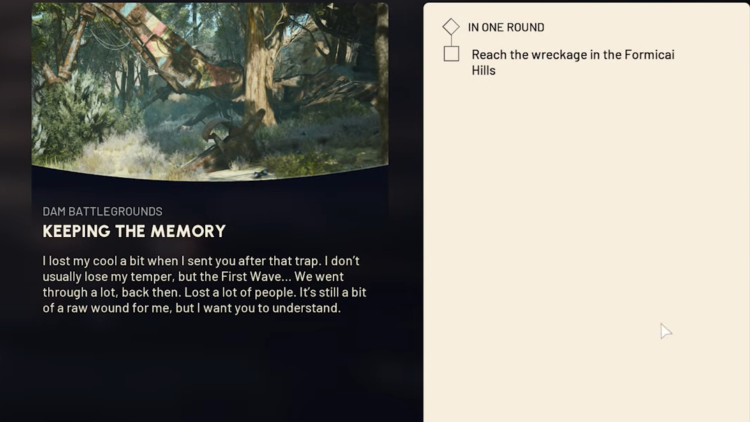 Step 1: Queue into a Dam Battlegrounds raid with Keeping the Memory active and check your initial spawn. Spawning near Formicai Hills greatly reduces travel time and helps avoid bugs tied to other players reaching the area first.