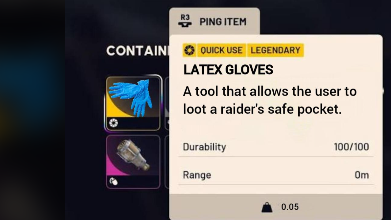 That’s why players reacted so strongly to the latex gloves mockup. If another raider could simply reach into your safe pocket with a consumable tool, the entire premise of “this bit of loot is always safe” would be gone.