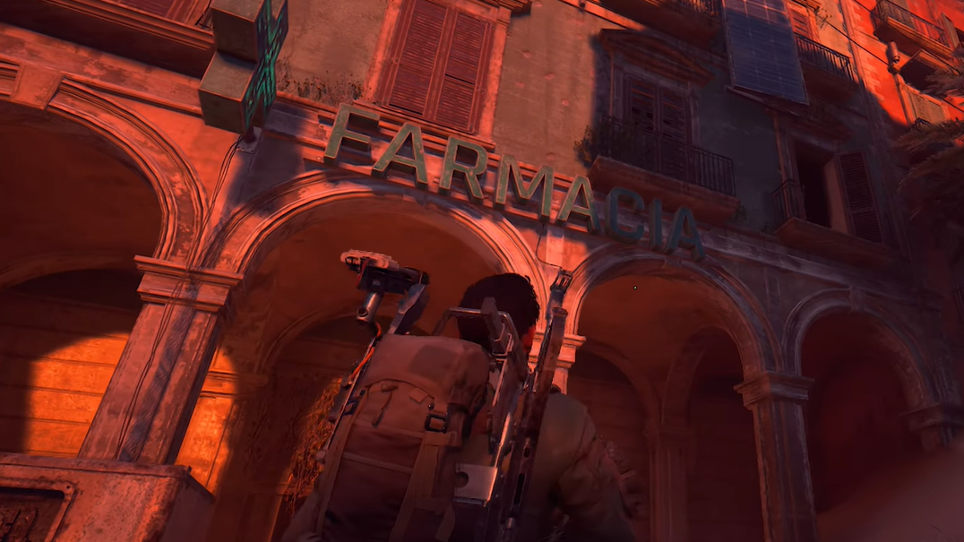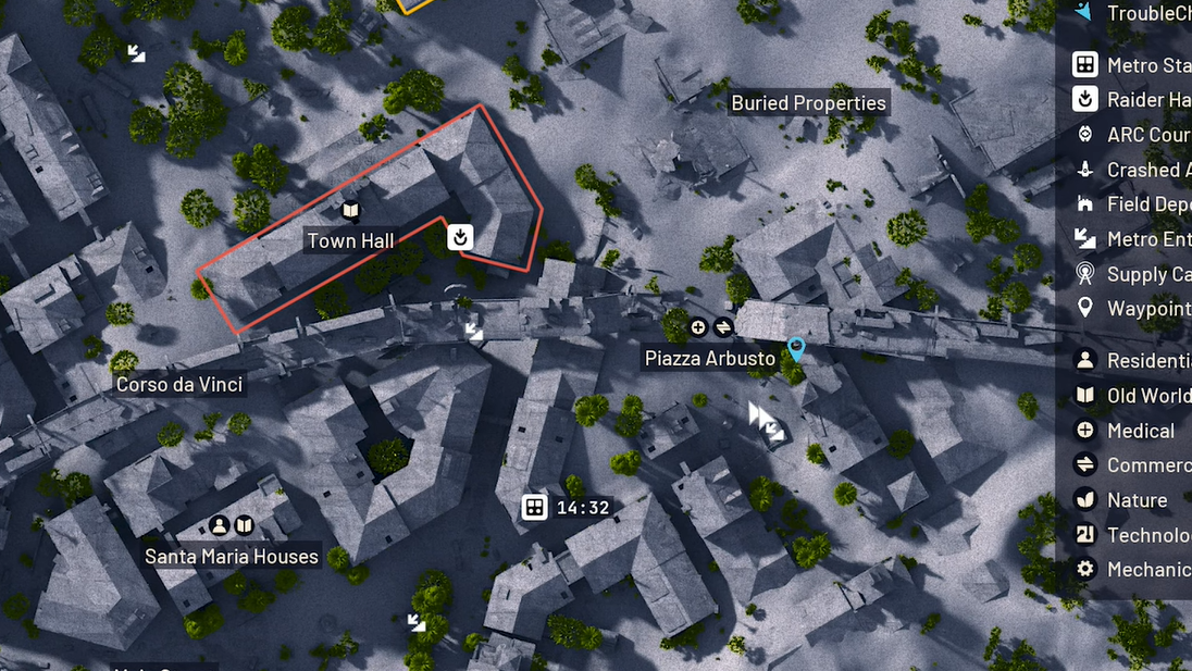 Piazza Arbusto is often busy with both ARC machines and rival raiders, and breaching the pharmacy door creates noise. A cautious approach keeps you from being pinned inside the building while you work through the objectives.