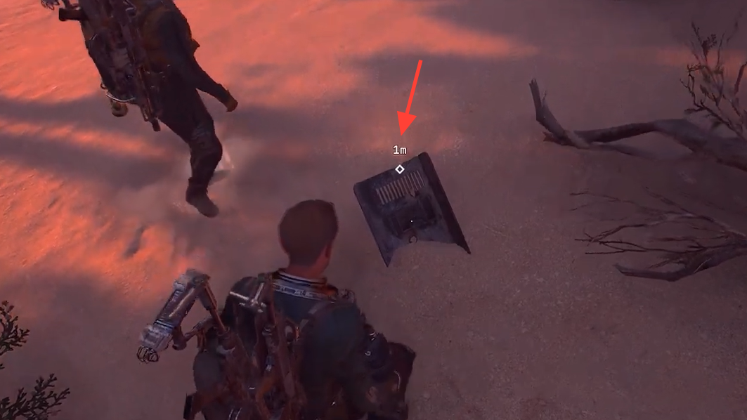 - Follow the prints through the fence breach and continue until the interaction prompt appears.