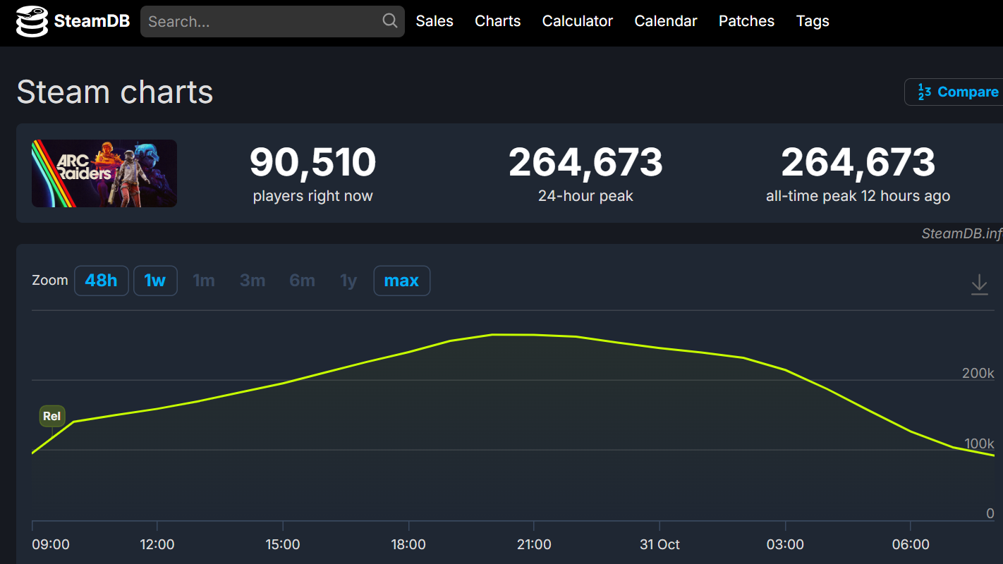 | Arc Raiders (Steam) | ~148,571 | 264,673 | October 30, 2025 |