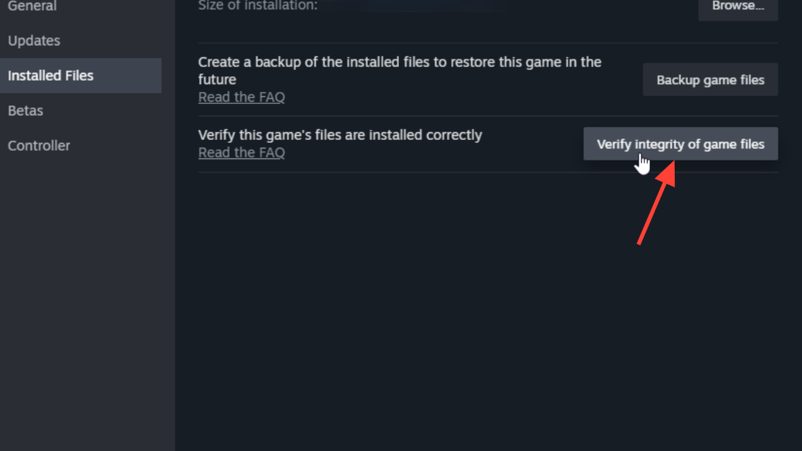 - Click “Verify integrity of game files.”
