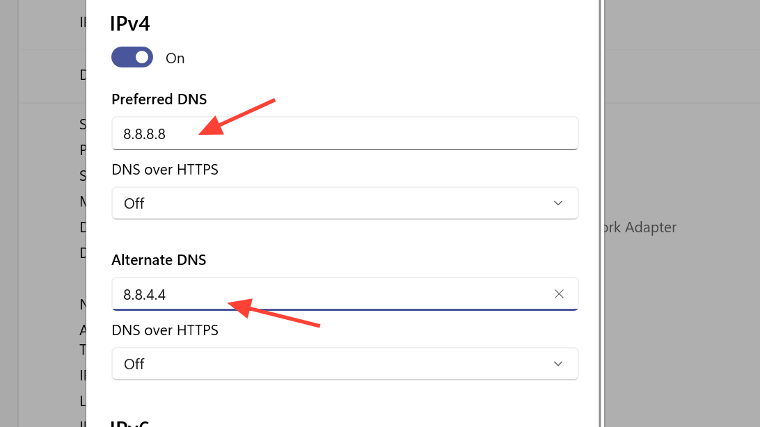 Step 3: Switch to a public DNS. In your active network adapter’s IPv4 settings, set DNS to either Google (8.8.8.8 and 8.8.4.4) or Cloudflare (1.1.1.1 and 1.0.0.1). Save, reconnect, and retry ARC Raiders.