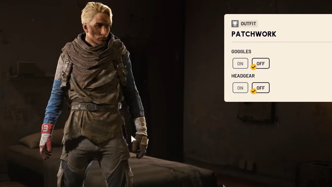 The base Patchwork skin includes toggle options for headgear (goggles, head wrap) and limited color variations. The Evolved version is expected to add two new color options and four toggle slots, though neither confirmed colorway appears to replicate the exact muted tones of the tutorial outfit. Players hoping for a perfect one-to-one match with the tutorial look may be disappointed, but the expanded toggle system should offer more flexibility than the base version provides.