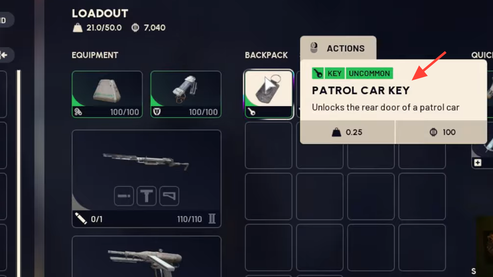 You can sell the Patrol Car Key for 100 credits, but its practical value is in opening that specific patrol car in Blue Gate. If you’re progressing through Blue Gate regularly, hold it and plan a tunnel route; if Blue Gate isn’t in your rotation, converting it to credits is a simple fallback.
