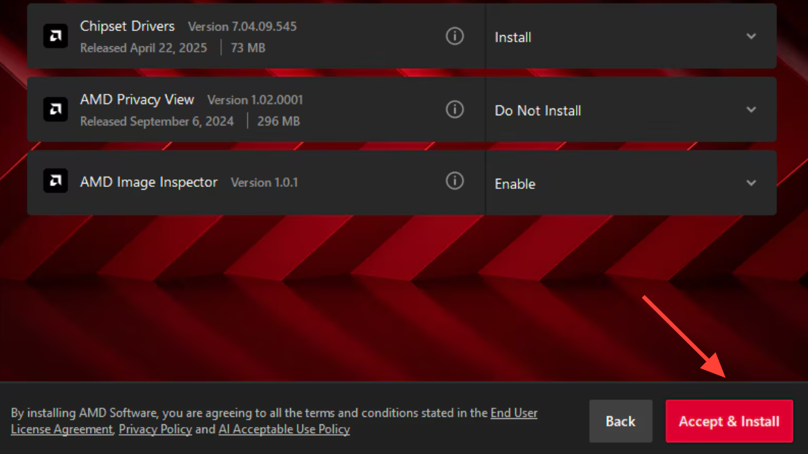 - For AMD Radeon: install the latest driver for your card. During setup, a “driver only” install can be used if you want to minimize extra software.