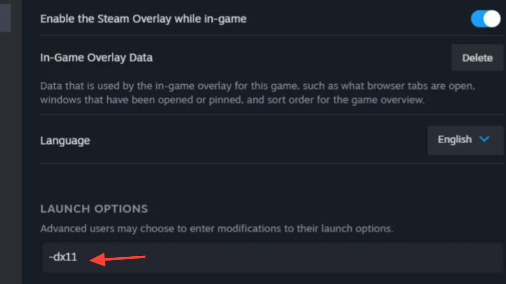 -dx11. - Close the window and launch the game.