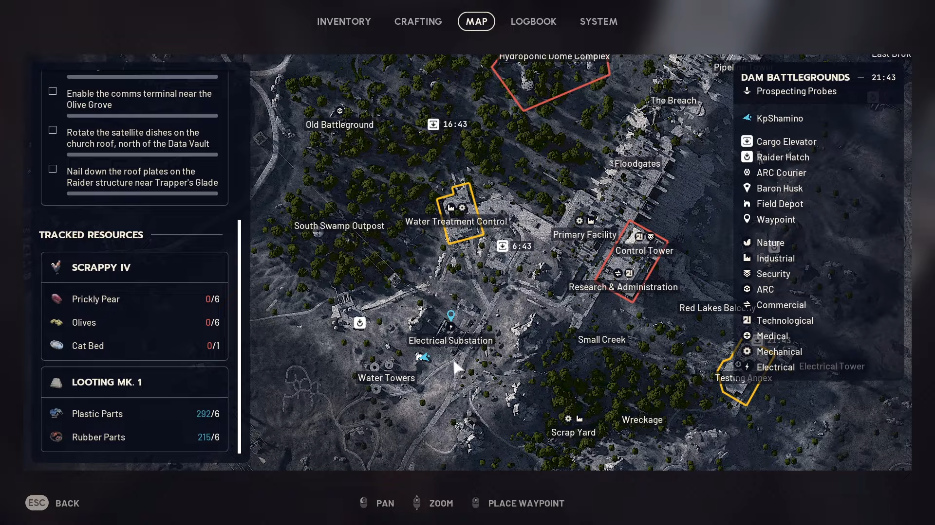 - Dam Battlegrounds: Control Tower, Research & Administration, and the Power Generation Complex. The interior corridors and offices here have high densities of containers with electrical and tech loot.