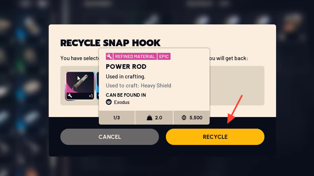 Power Rods can be sold for a strong payout or broken down for parts. Selling yields far more Raider Coins than recycling; recycling is about materials, not profit.