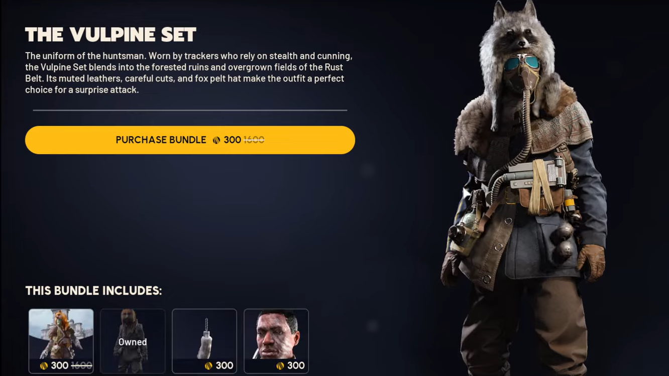 Two new cosmetic sets arrived with this patch. The Vulpine set features a fox pelt hat, muted leather outfit, and white face paint, available in the store immediately. The Slugger set is a long-sleeved, padded, baseball-themed outfit earned through the Shared Watch event track — you can't buy it directly.