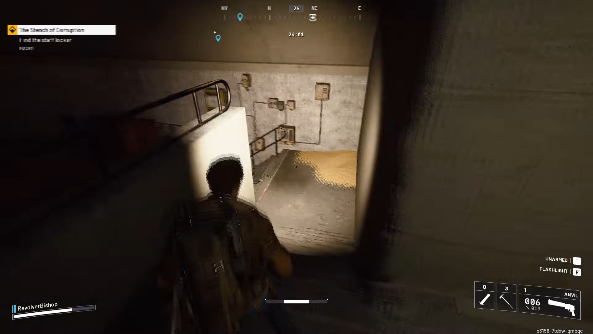 Step 3: After that left turn, continue straight until you see a staircase leading down. This staircase brings you into the staff locker room area needed for the second objective.