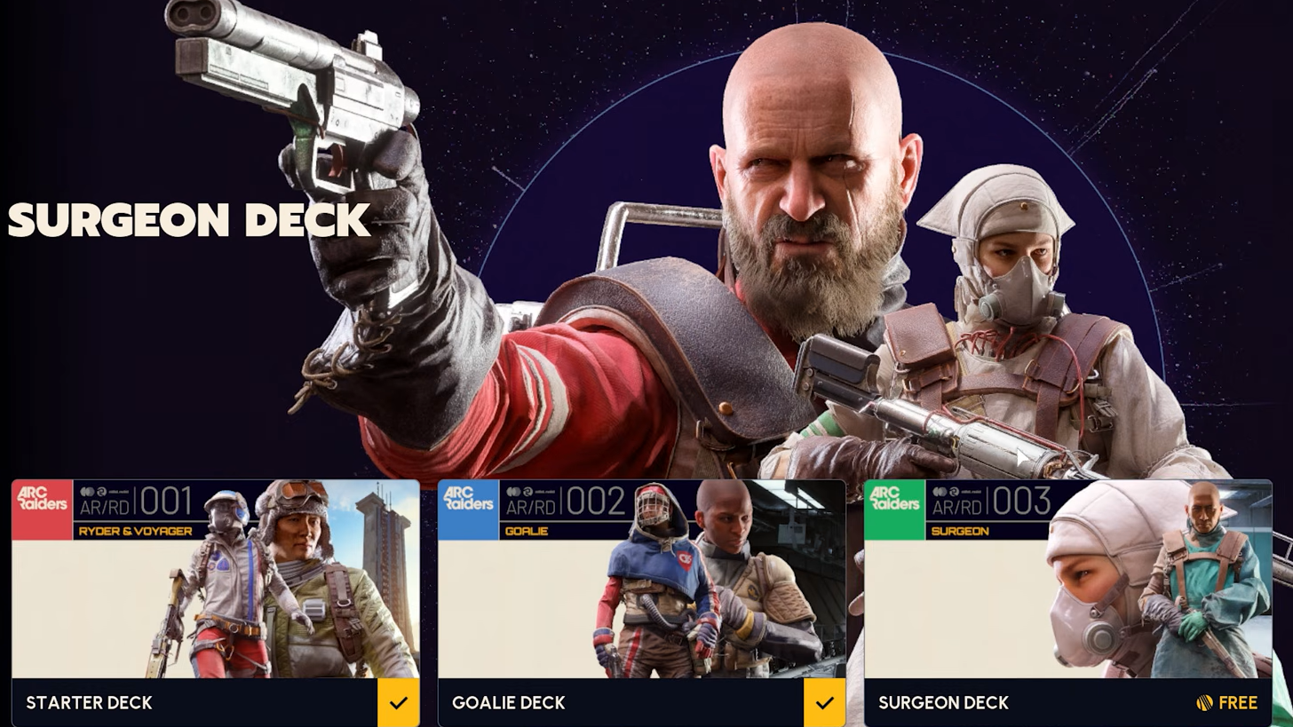 Quick answer: Open the Decks tab in ARC Raiders, find "The Surgeon," and claim it for free. You'll then spend a total of 1,070 Cred across five pages to unlock every reward.