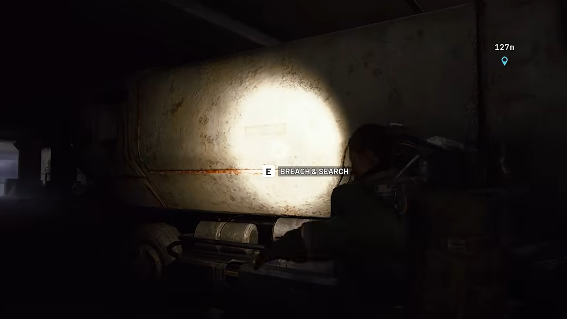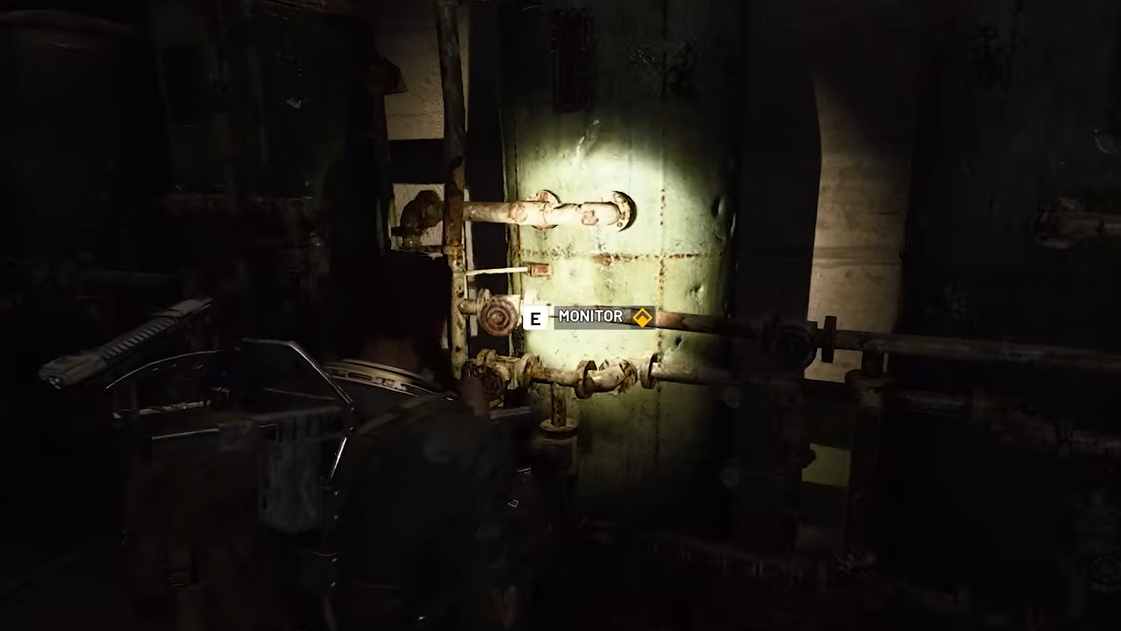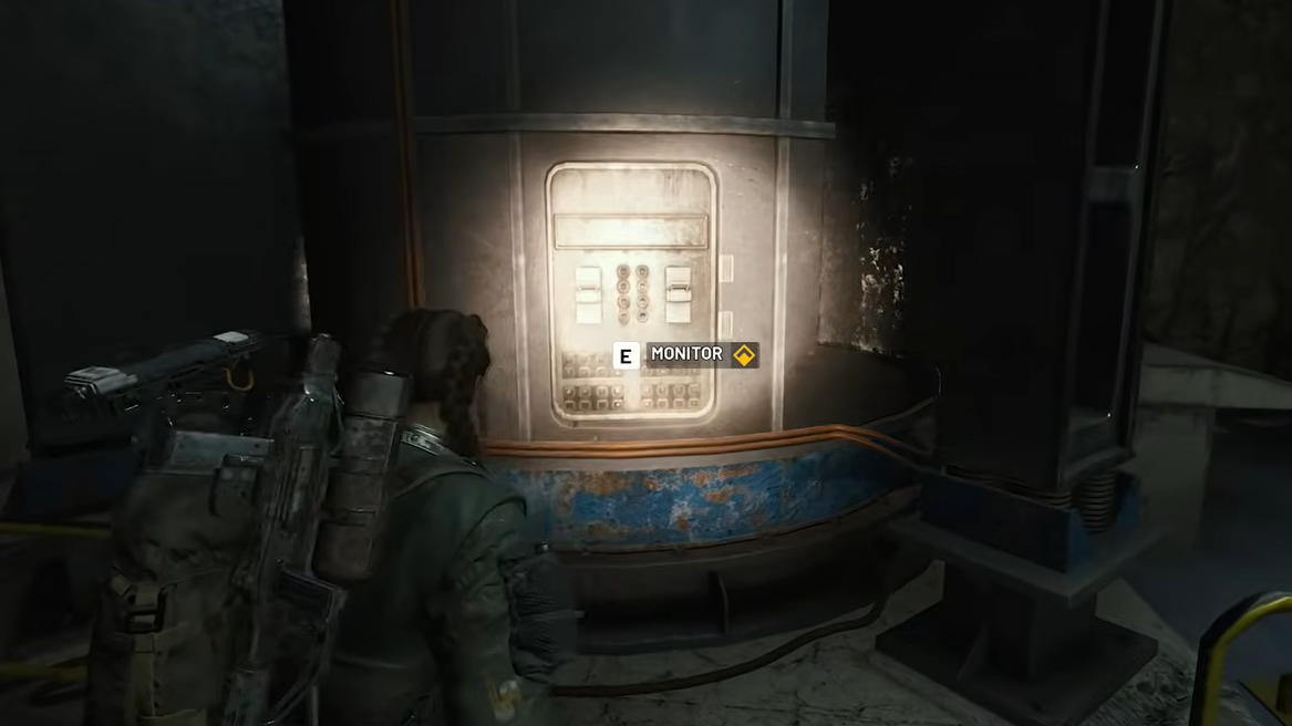 Step 1: From the bottom of the concrete slope, briefly move forward into the main tunnel, then double back and look along the wall to your right. You’re looking for a conspicuous green water tank or filtration unit with an interaction prompt.