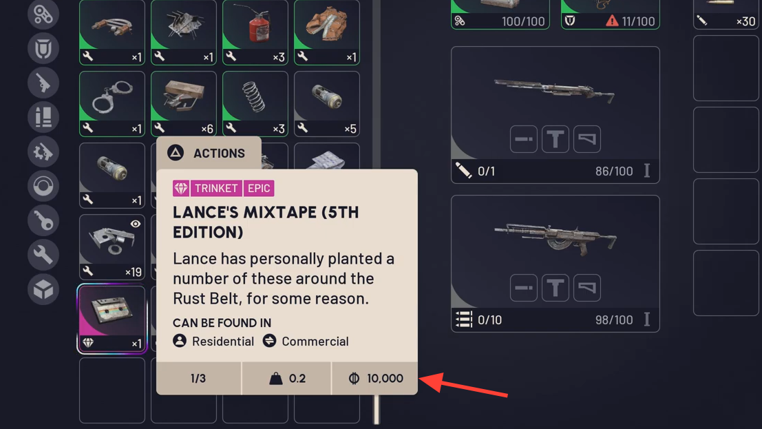 If you keep only one mental checklist: stash what your quests need, prioritize the highest sell values per slot, and bring one or two utility trinkets until your consumable loadout is stable. And if you ever spot Lance’s Mixtape, that’s the big-ticket item — make room.