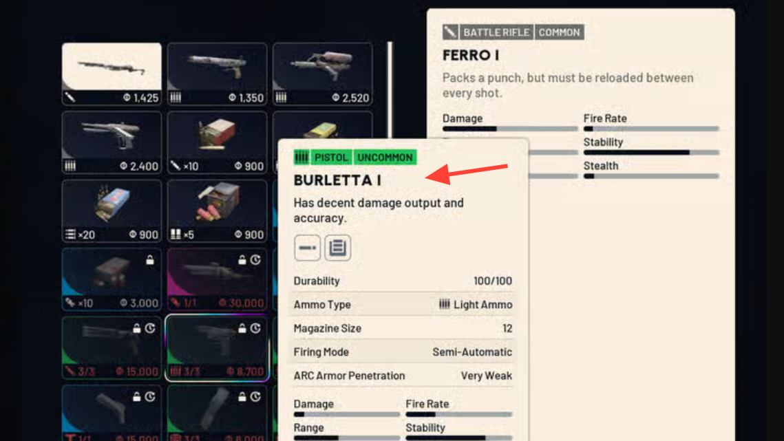 The starting Burletta pistol outperforms the generic sidearm you’re handed shortly after the tutorial, so retaining it is useful in your first runs. Keeping the early salvage also saves time and lets you craft or sell sooner.