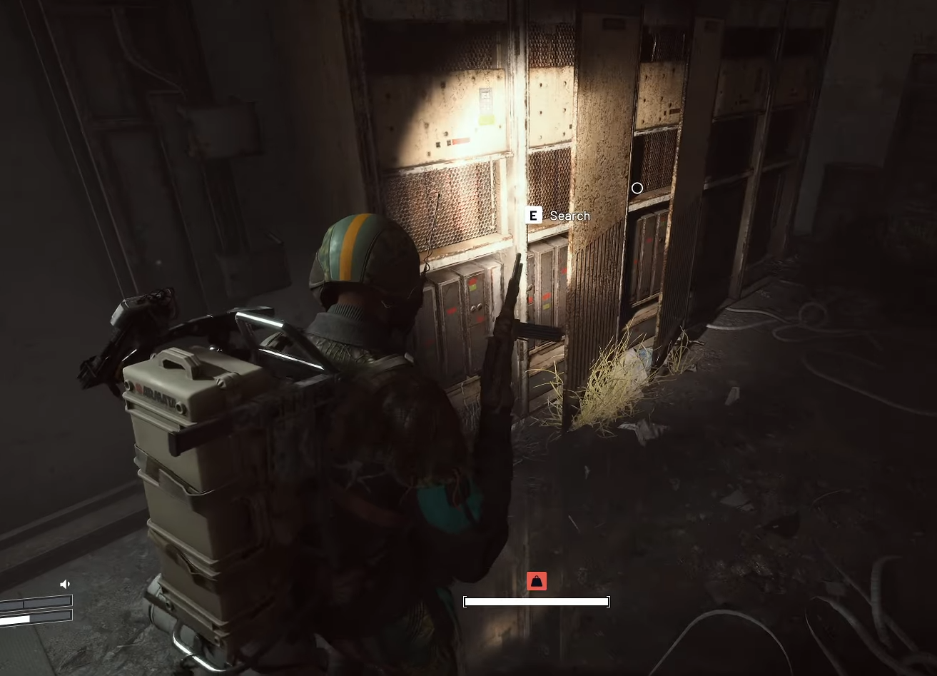 Prioritize searchable tech: computers, server boxes, control consoles, racks, and metal cabinets lining interior corridors. You can pull wires directly from containers or pick up higher-tier tech that converts into wires back at base.