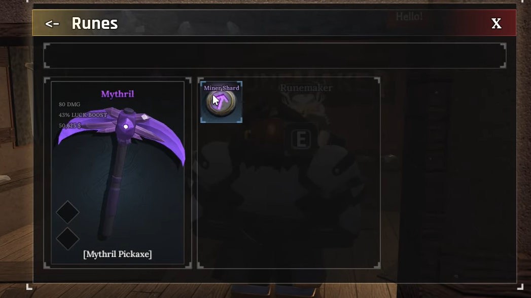 Step 3: Interact with the pickaxe to buy it for $150,000.