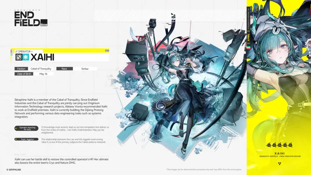 Xaihi is the primary dedicated support for Cryo teams. She supplies Arts Amp, Cryo Amp, and additional Cryo damage bonuses, significantly increasing the output of Cryo DPS such as Last Rite and Yvonne. Her toolkit is highly focused on Cryo; outside that element she loses most of her value, which is why she sits in S‑tier as a core, but specialized, enabler.