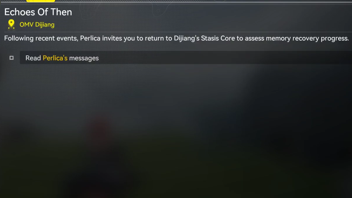 Echoes of Then is the first subquest in Laevatain's Operator Mission chain, called "Let the Fire Consume the Ashen Past." It belongs to the Laevatain – Act 1 chapter and is classified as an Operator Side Mission. The quest becomes available only after you clear the Cradle of Ages main mission during Chapter 1, Process 3. Once that mission wraps up, head to the OMV Dijiang and meet Perlica in the Stasis Core to kick things off.