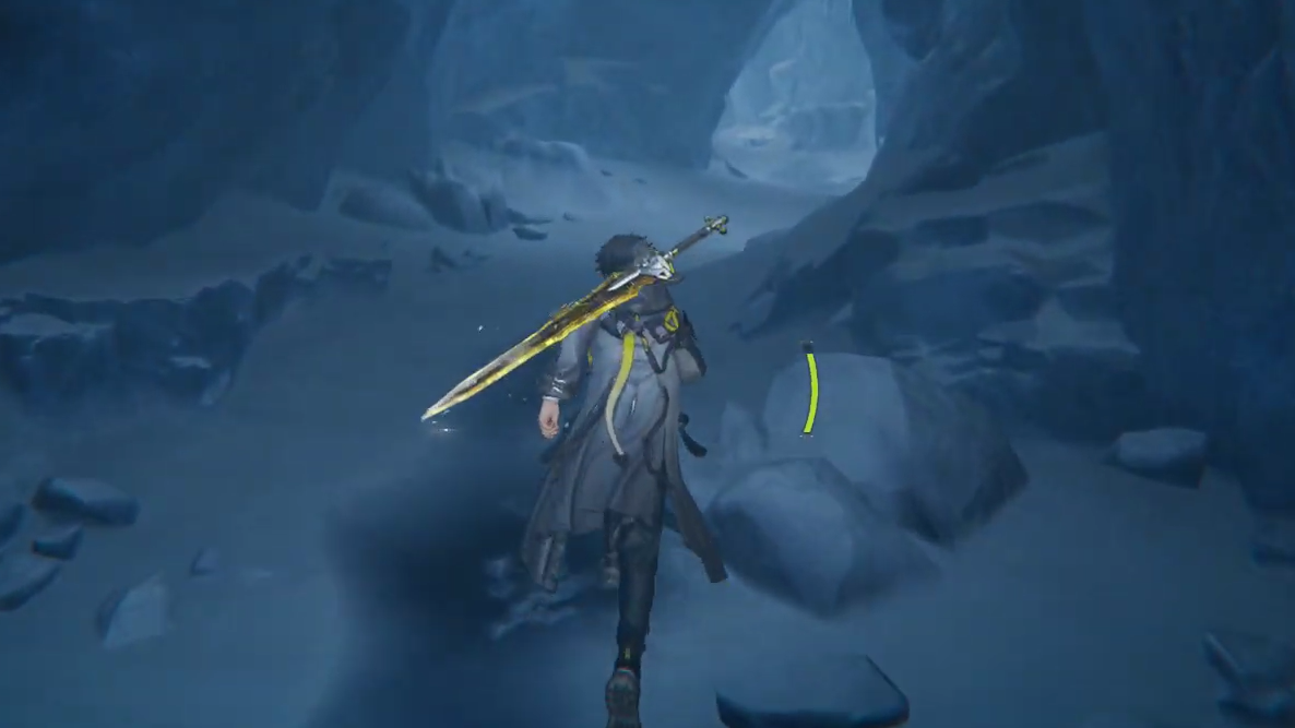Step 3: Once all four memories are collected, use your scanner. A yellow line will appear on the ground, tracing a path toward a hidden entrance. Follow it until you reach a large open battlefield filled with frozen structures and embedded swords.
