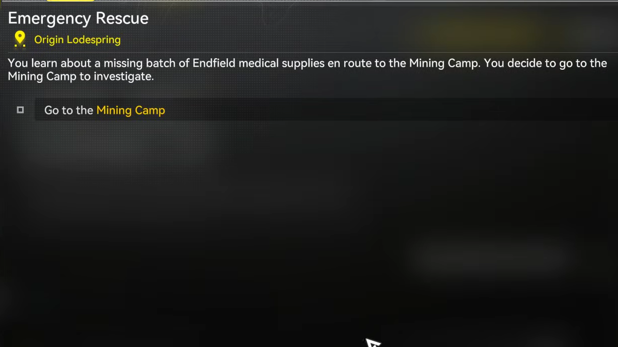 Step 1: Return to the Mining Camp's medical facility and hand the remaining supplies to Medical Officer Yue so the patients can be treated.