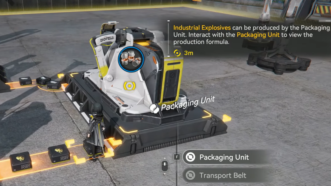 - Packaging Unit continuously crafts Industrial Explosives while inputs and power are available.