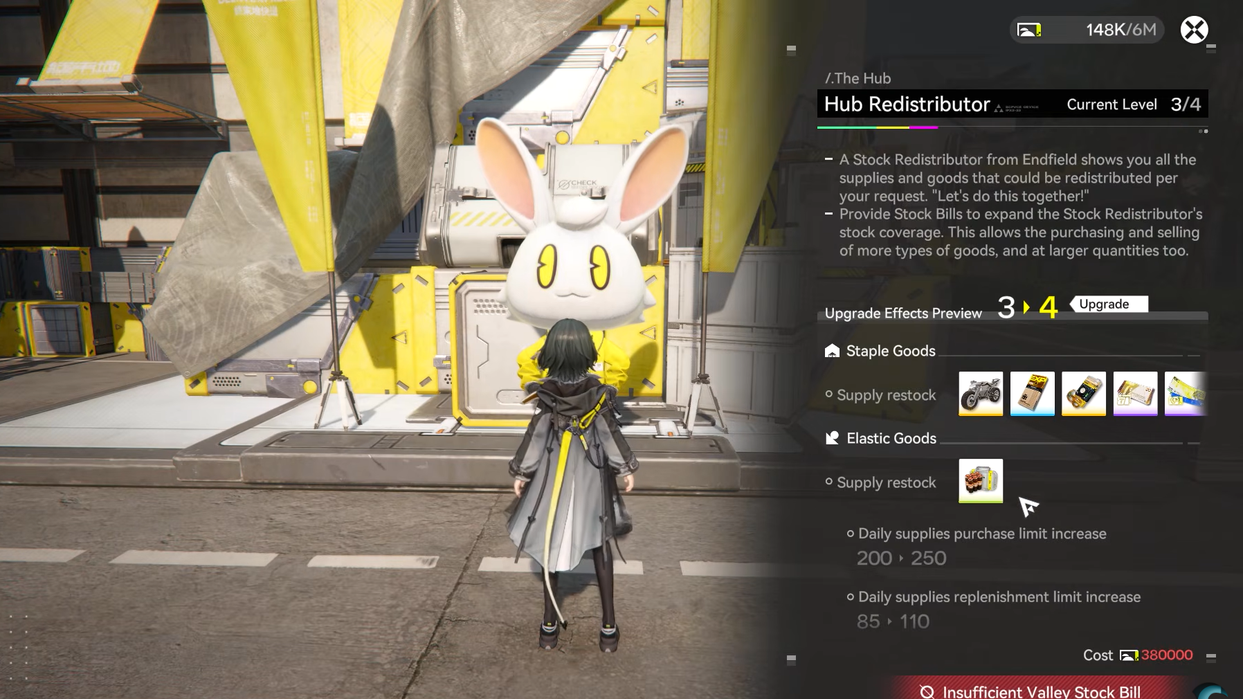 - Invest Stock Bills into terminal upgrades at The Hub and Originium Science Park, increasing daily Elastic Goods capacity.
