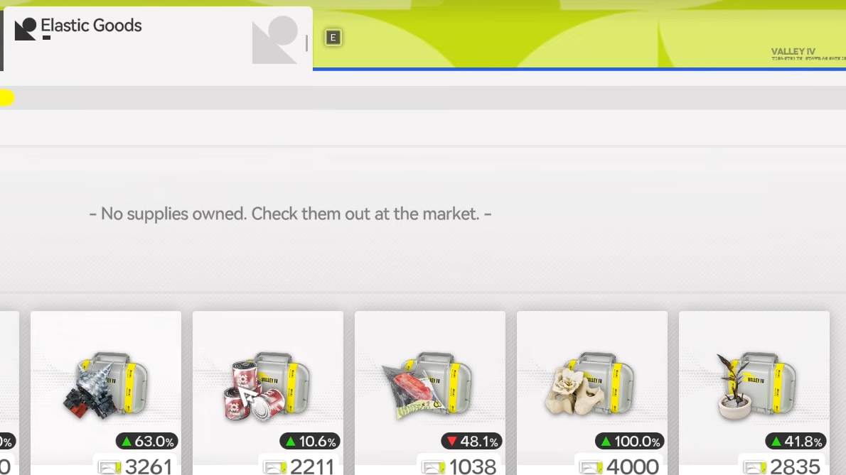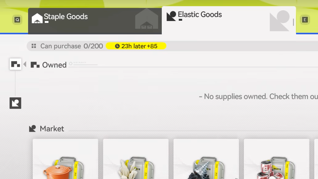 Elastic Goods is where you leverage daily price swings to generate extra Stock Bills. Each Elastic Good shows: