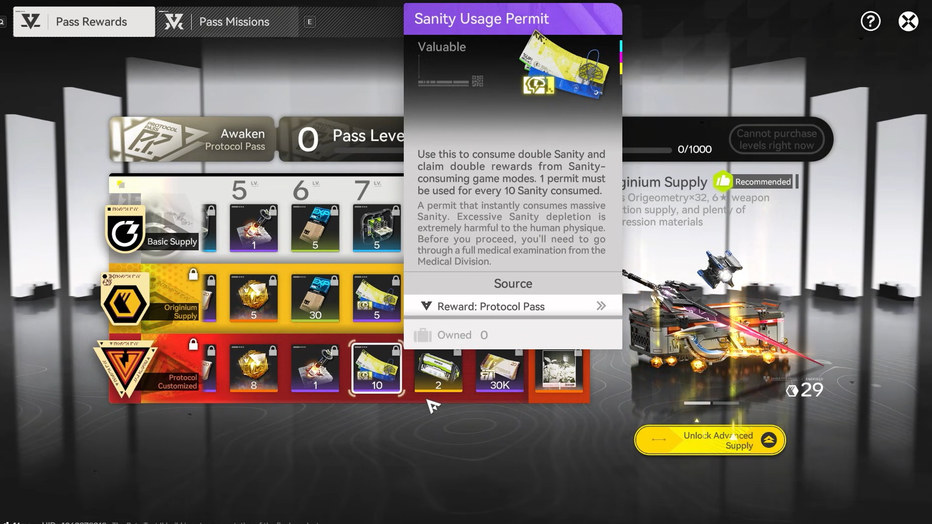 - Strongly consider Originium Supply – Unlock it with Origeometry earned in-game, complete it each patch, and let it pay for itself. You gain a 6★ weapon and come out ahead in Origeometry.