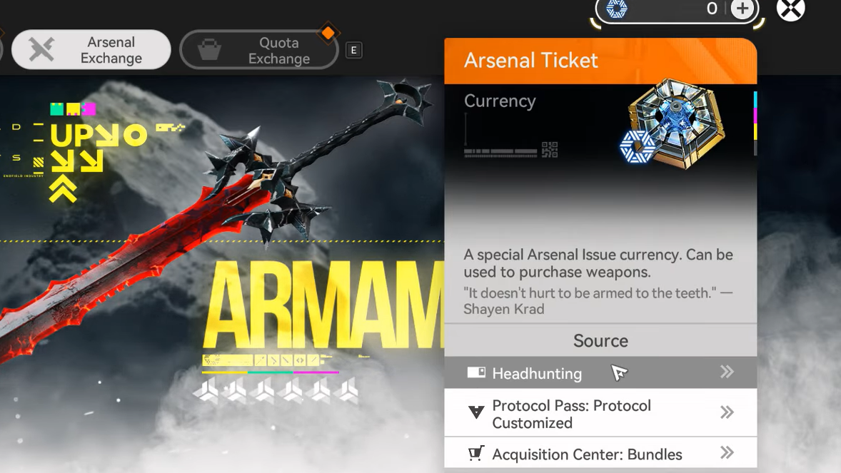 Weapon gacha in Endfield lives inside the Arsenal Exchange. These banners — called Arsenal Issues — are your primary source of high‑rarity weapons.