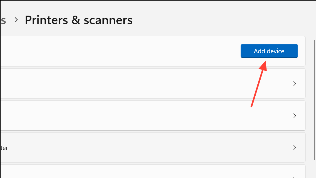 Step 4: Click Add device near the top right. Windows will scan for available printers and display a list. This process may take several minutes, especially on busy networks.