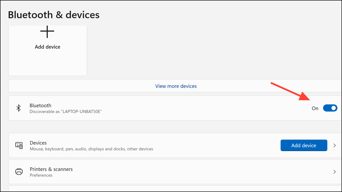 Step 1: Enable Bluetooth on both your printer and Windows 11 PC. On your PC, open Settings > Bluetooth & devices and toggle Bluetooth on.