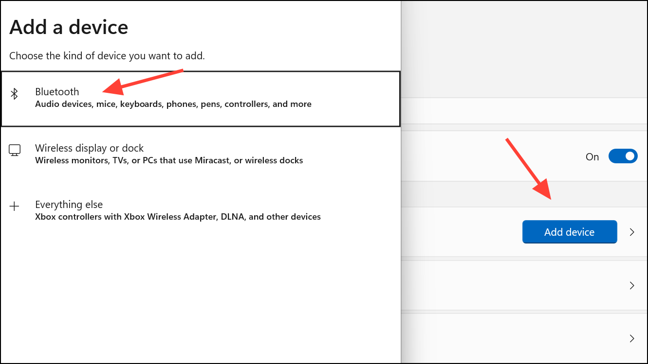 Step 3: On your PC, under Bluetooth & devices, click Add device, then select Bluetooth. Choose your printer from the list of available devices and follow prompts to complete pairing and installation.