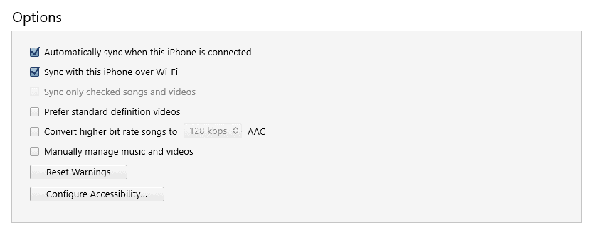 - Sync with this iPhone over Wi-Fi: Enabling this will let you backup your iPhone over WiFi. Your computer and your iPhone should be in the same network for this to work.