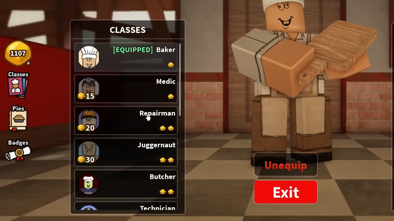 Nuggets are the lobby currency used to unlock classes. Cash, the in-round currency, is separate and earned from selling pies. Don't confuse the two.
