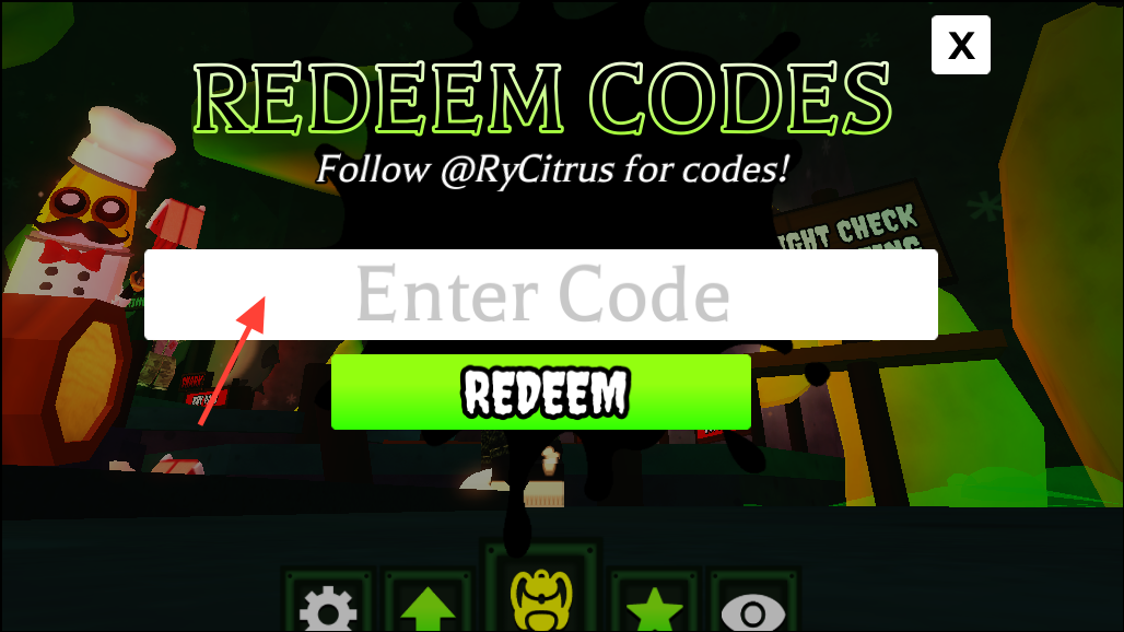Step 2: In the lobby, tap/click the star icon at the bottom of the screen to open the code entry window.