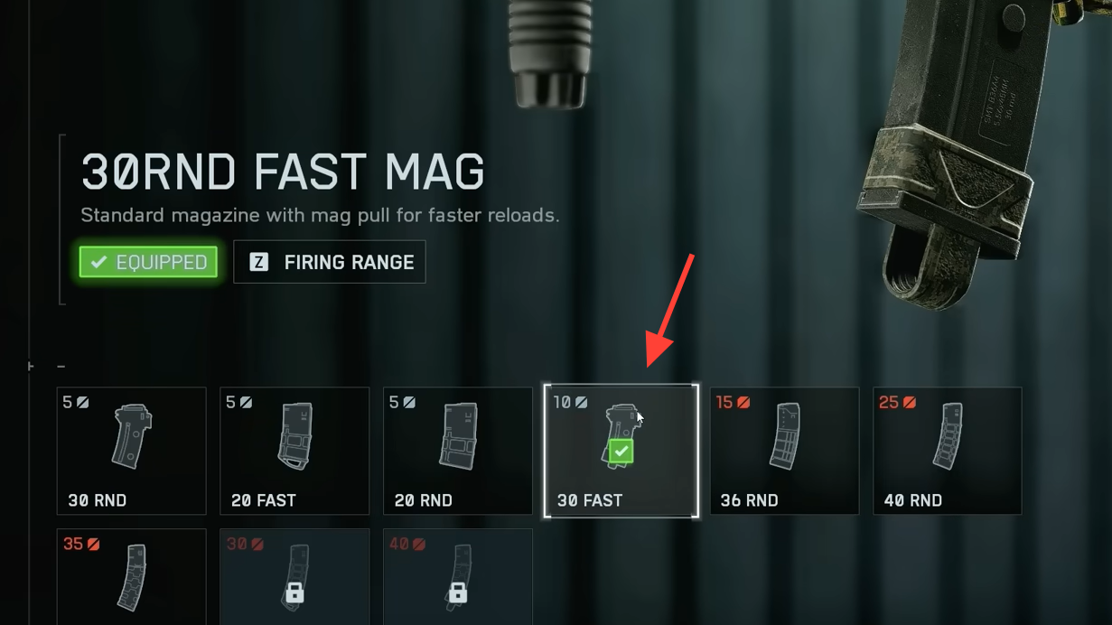 | Magazine | 30RND Fast Mag | Fast reloads for frequent engagements while leveling. |