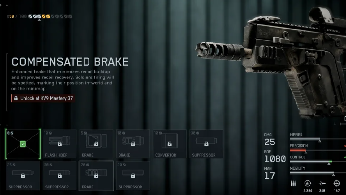Leveling path: swap 6H64 Vertical to Ribbed Stubby when available. If you need more control before then, the Alloy Vertical is a safe interim pick. A Compensated Brake at mid‑Mastery is a solid alternative muzzle if Linear Comp isn’t landing for you.