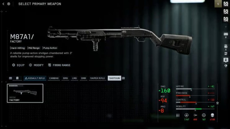 M87A1 shotgun loadout (starter)