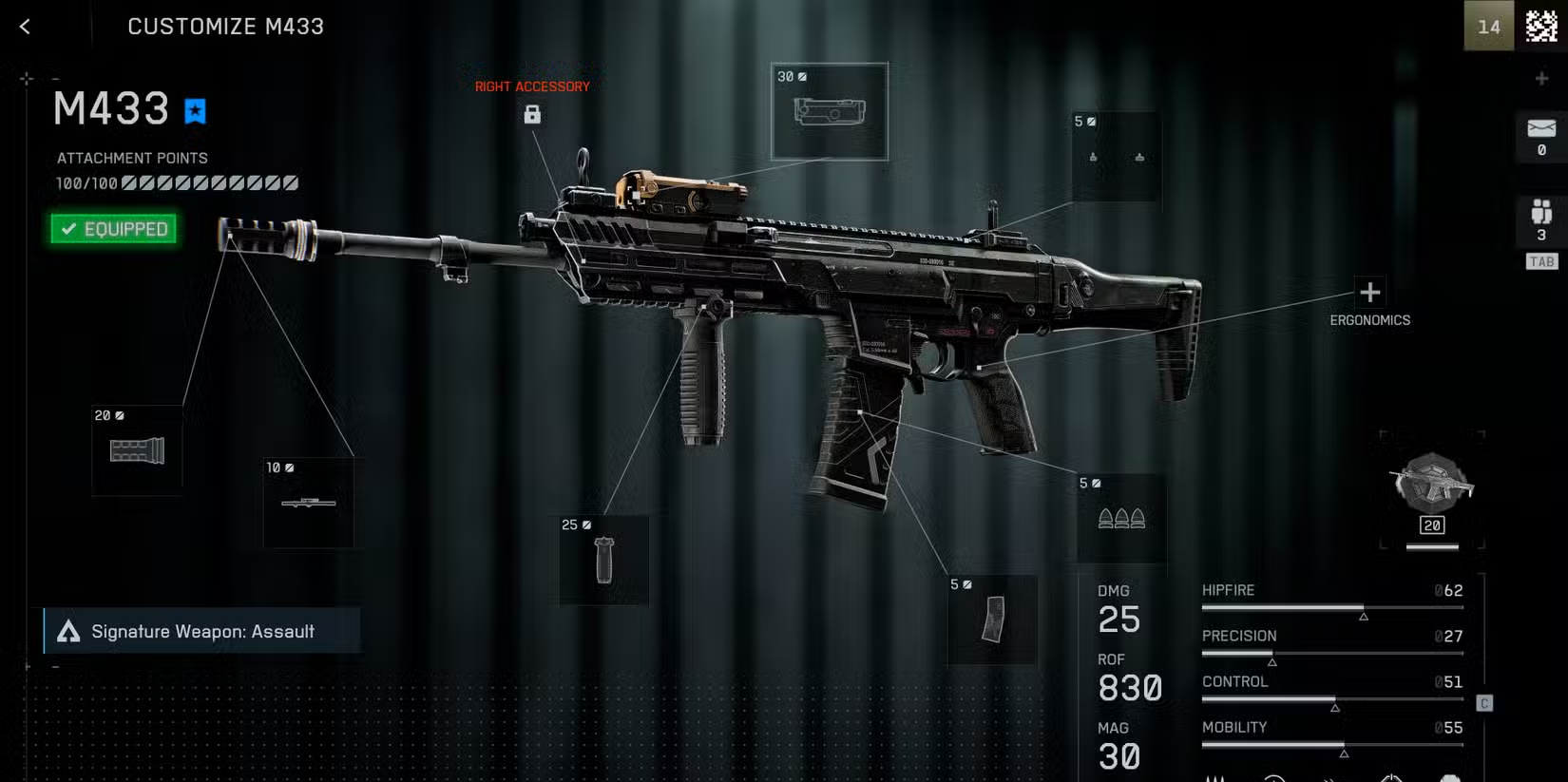 M433 assault rifle low‑recoil build (starter)