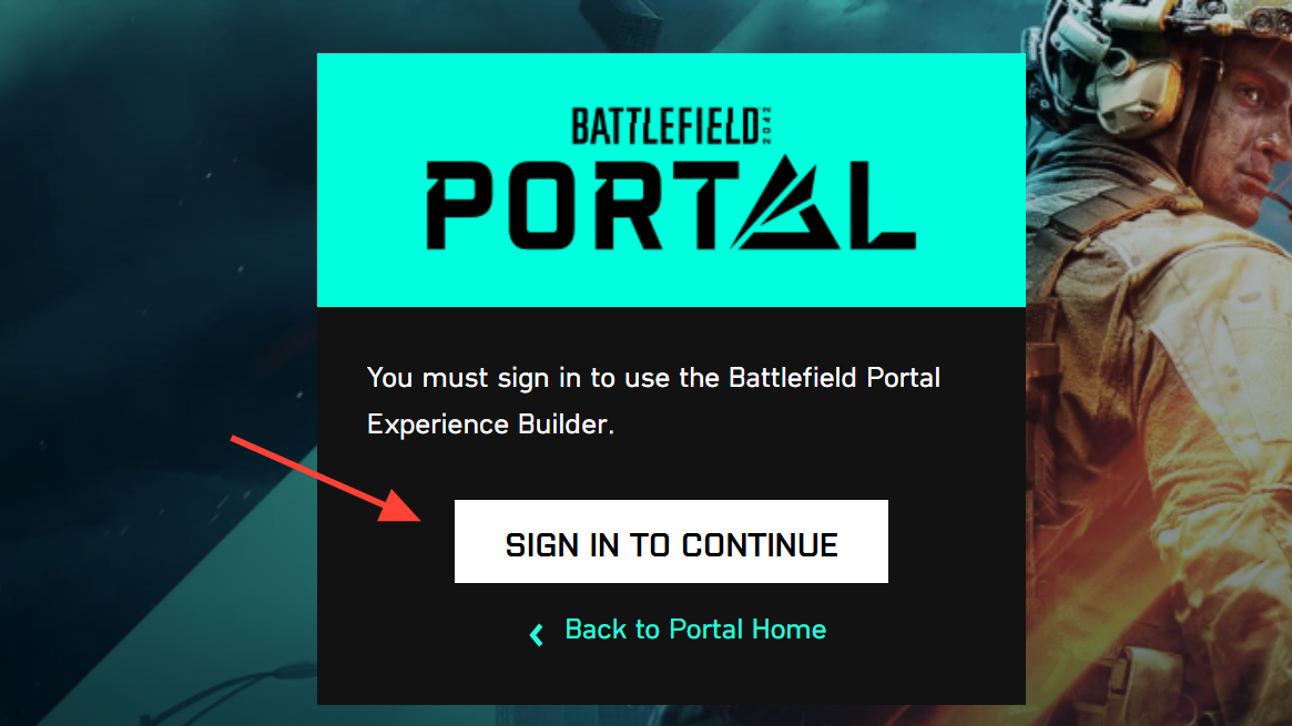 - Sign in at the Battlefield Portal site using the EA account linked to your platform: portal.battlefield.com.