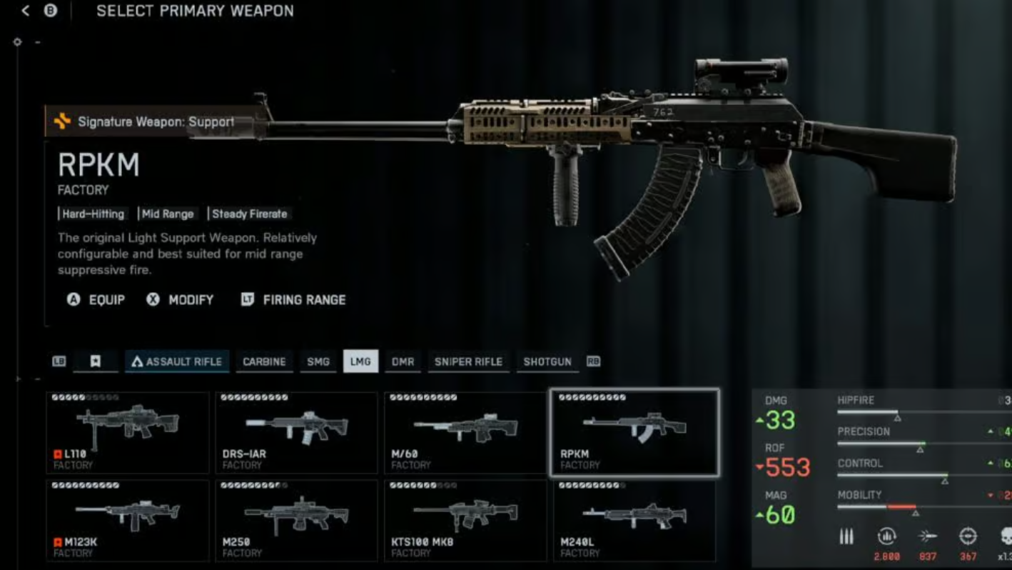 Bullet Storm 2: damage with KTS100 MK8 or RPKM, plus LMG multi-kills