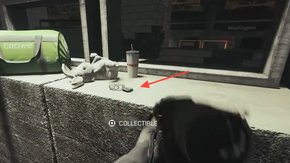 - Dog tag 3: In the subway station, after you drop into the tunnels and clear the platform fight. Between the pillars, check the left side of the central concrete block with the station boards — the tag sits beside a toy rabbit and a green sports bag labeled “Crowe.”