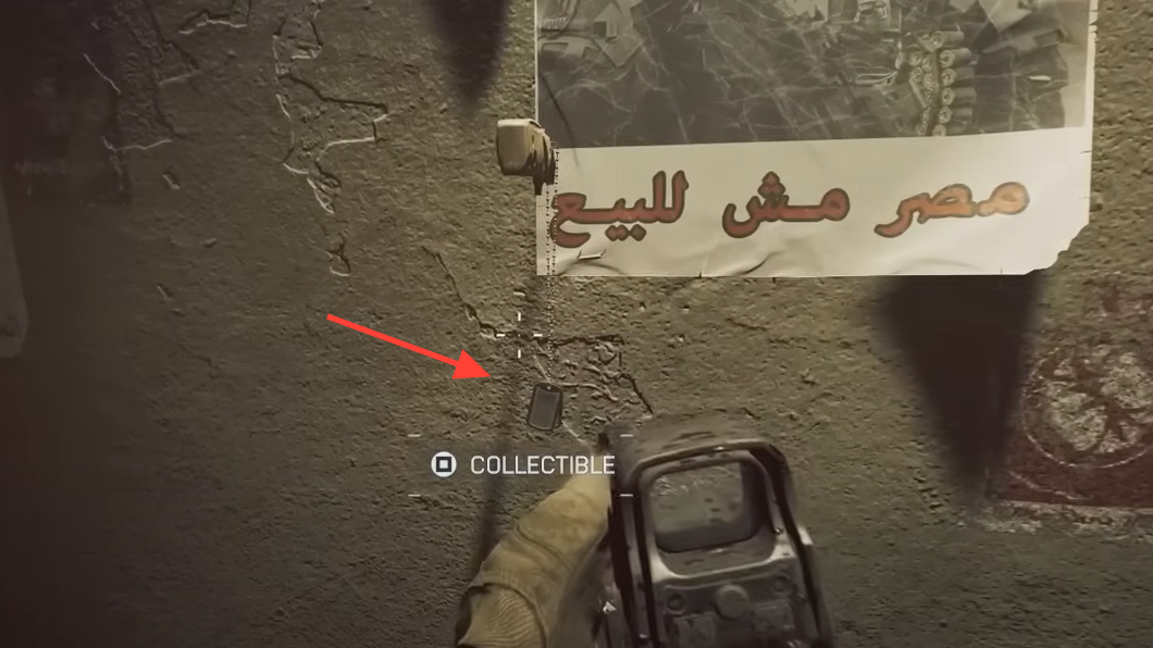 - Dog tag 2: Shortly after the market firefight on the way to the helicopter. On the east side of the courtyard, enter the tall building with the blue doorway and search interior staging surfaces; the tag is on a visible surface along your route upward.