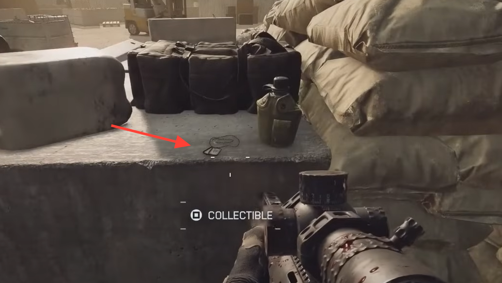 - Dog tag 2: During the approach to the construction site, scan tool benches and interior corners in the transitional buildings. The tag sits in plain view on mission‑critical clutter.