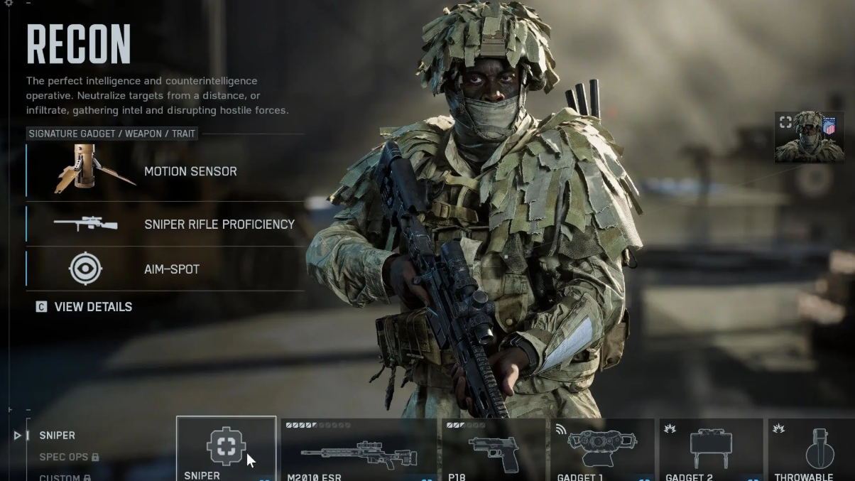 Recon controls when and where enemies can safely move. Sniper rifle perks—reduced sway, better breath‑hold stability, and faster bolt cycling—help lock down long lanes. Aim‑spotting automatically marks targets you ADS on, feeding intel to the team. Motion sensors reveal nearby movement on the minimap; drones extend reconnaissance; tracer darts set up lock‑ons for Engineers; decoys misdirect scope glint; C4 and anti‑personnel mines punish greedy pushes or careless vehicles.