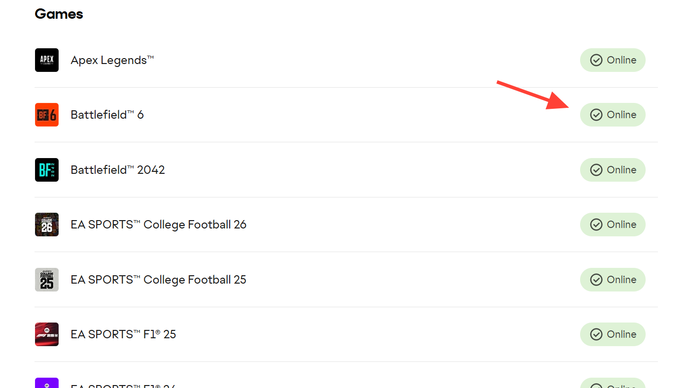 - Look at EA’s server status page under Battlefield 6.